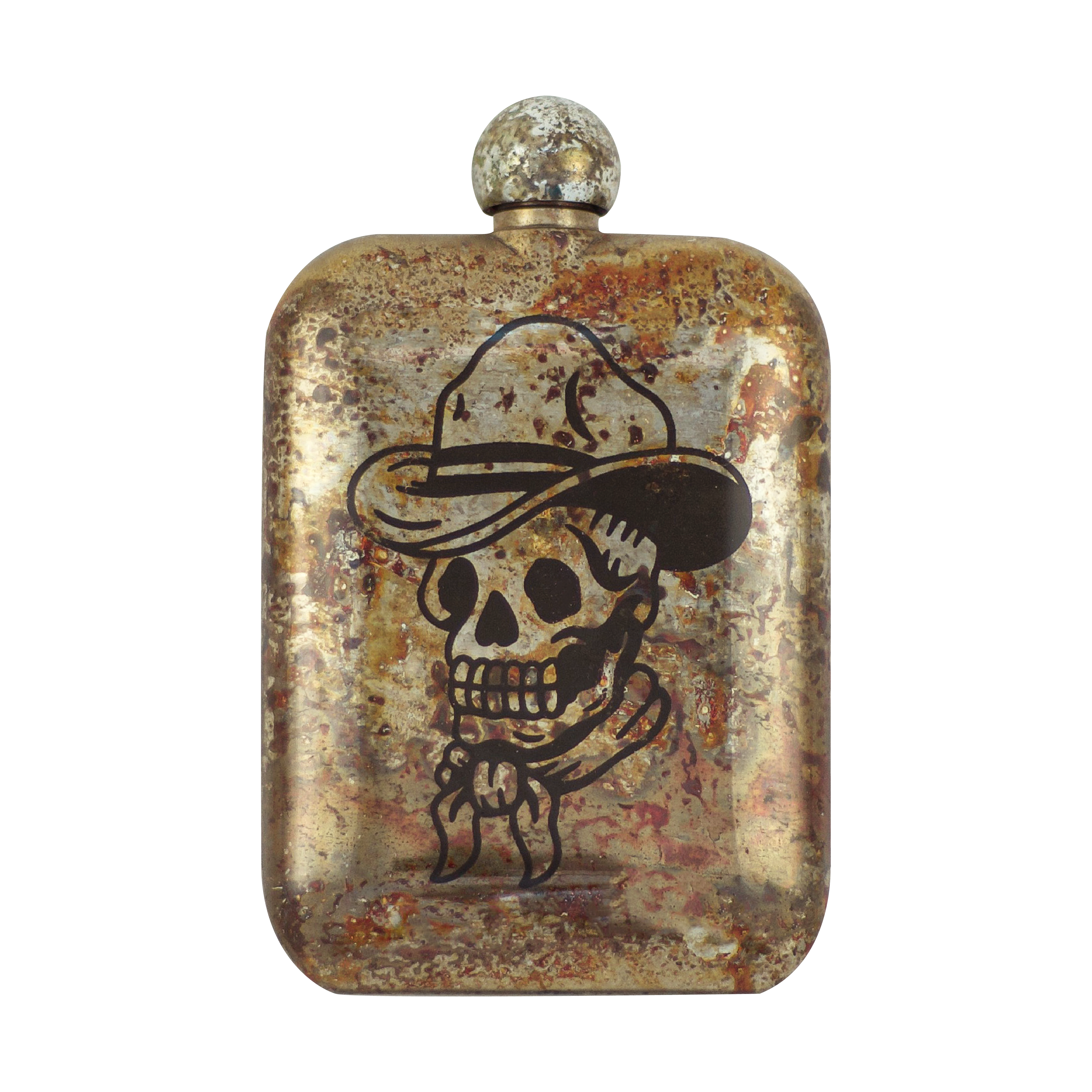 Yeeehaw! 6 oz stainless steel with etched embellishments atop Sneerwell's classic patina.