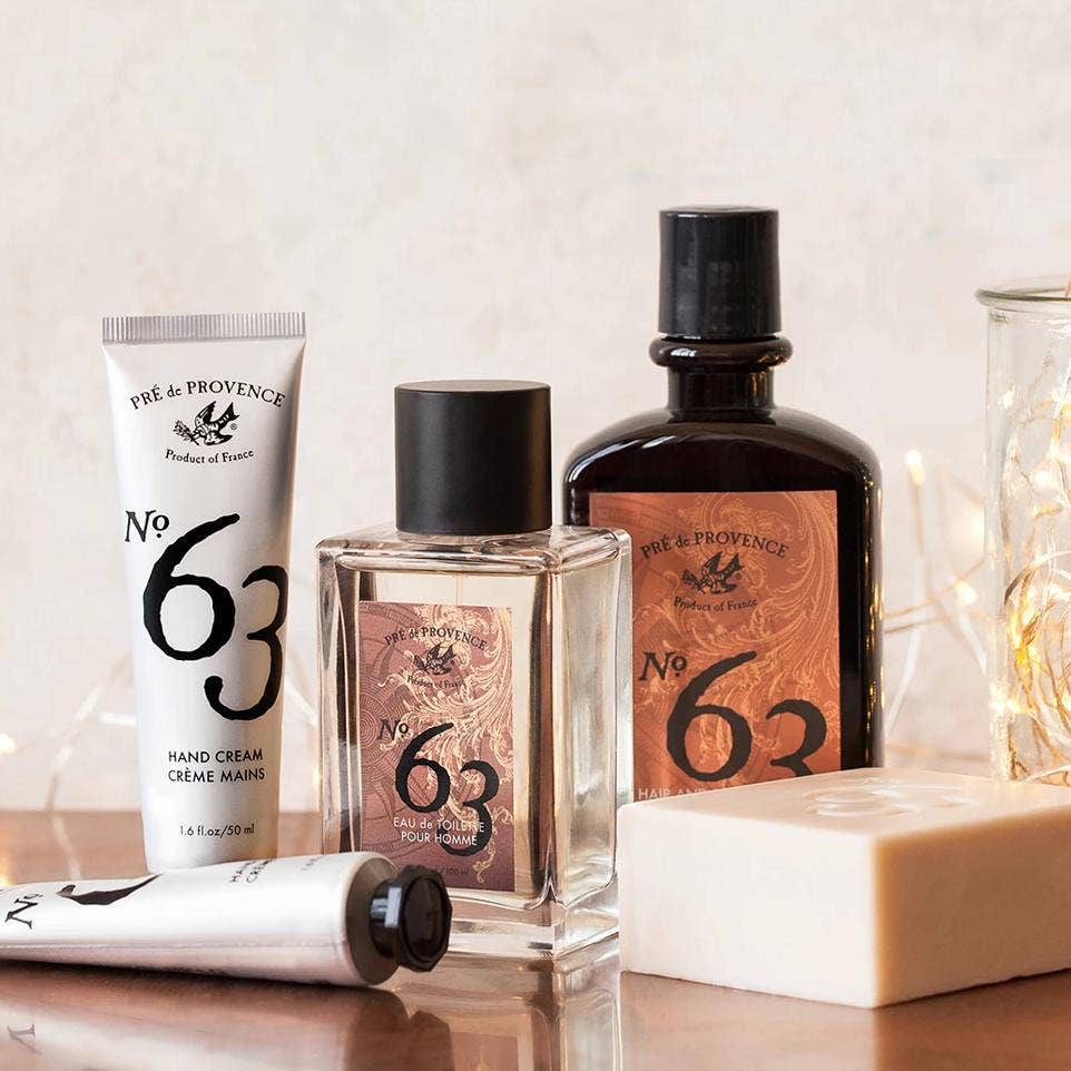 No.63 Eau de Toilette (100ml). Enjoy our popular scent longer than ever by layering the fragrance with our new Eau de Toilette spray in a handsome, giftable box. Aromatic, warm and spicy in nature, No.63 is a classic expression of masculine fragrance with a peppery citrus top note rounded by woody cedarwood, juicy plum and violet leaves that finish into an ambery base of leather and tobacco.