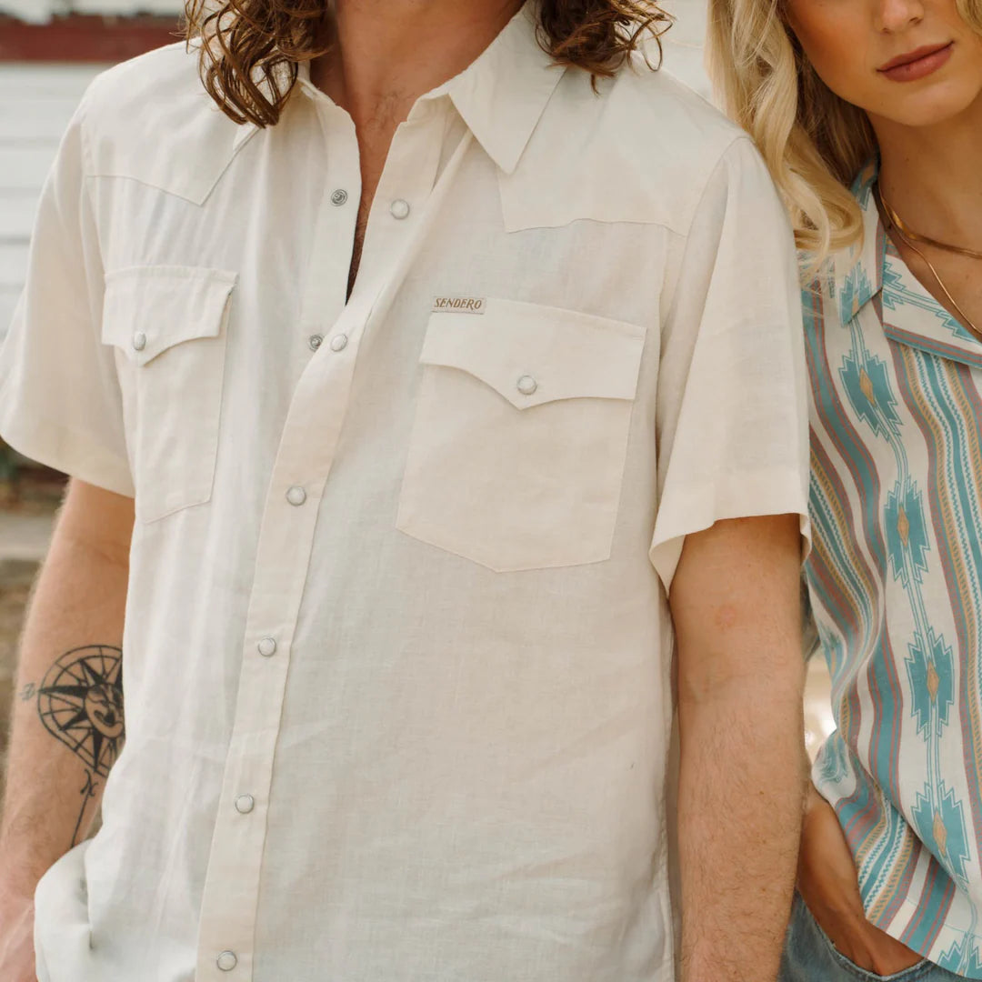 Wyatt Pearl Snap Short Sleeve : Antique White