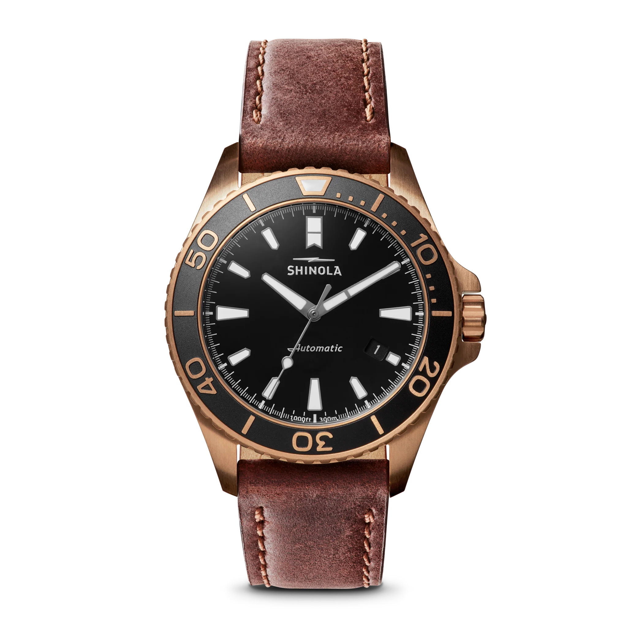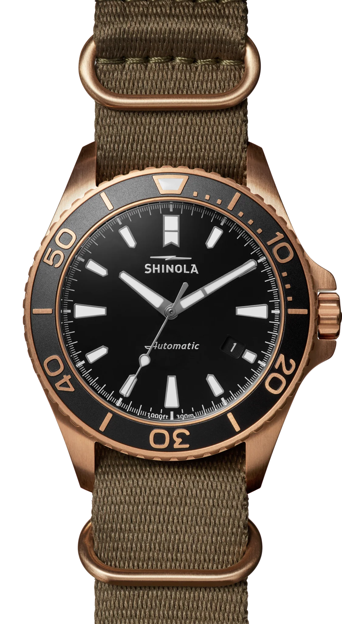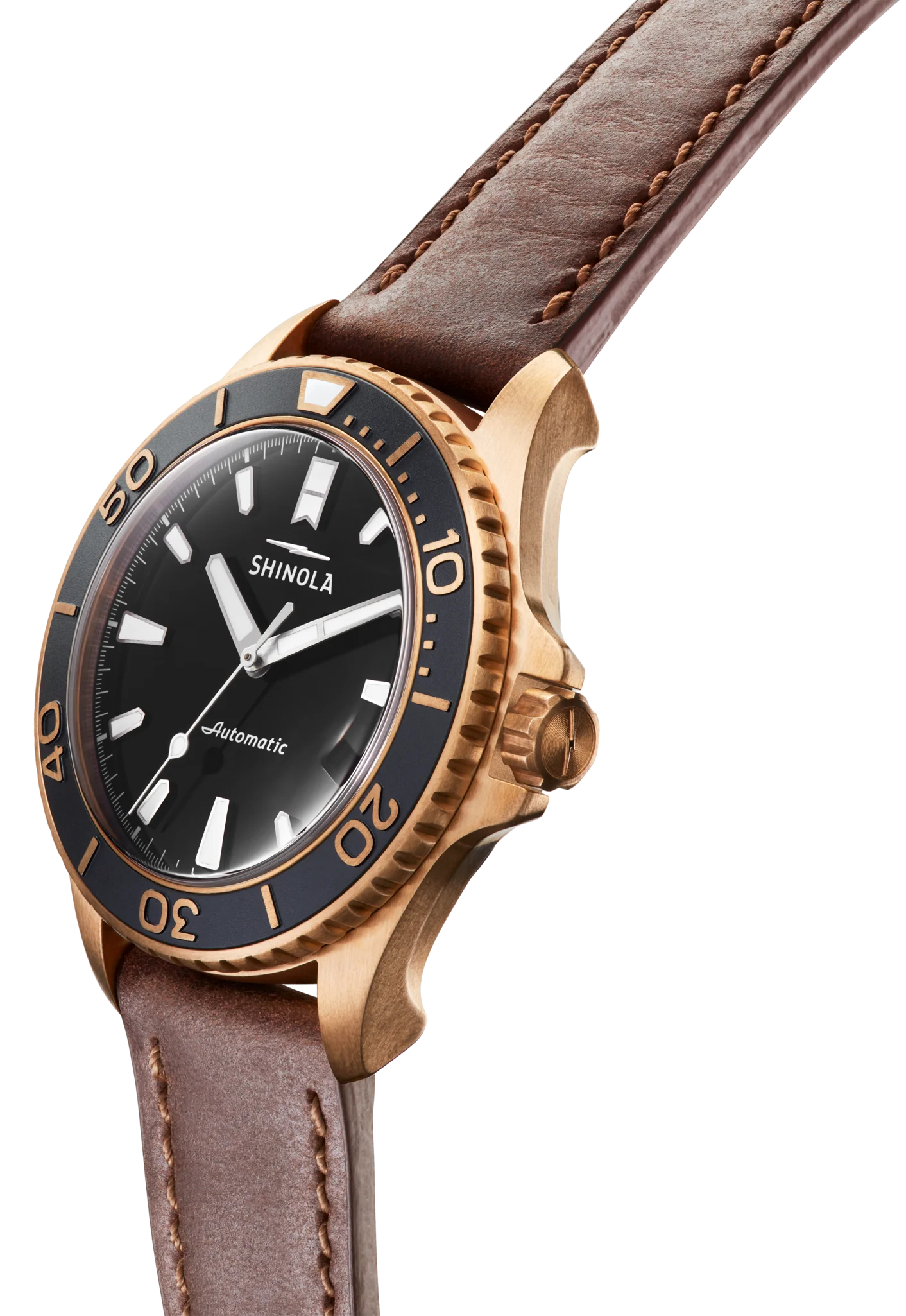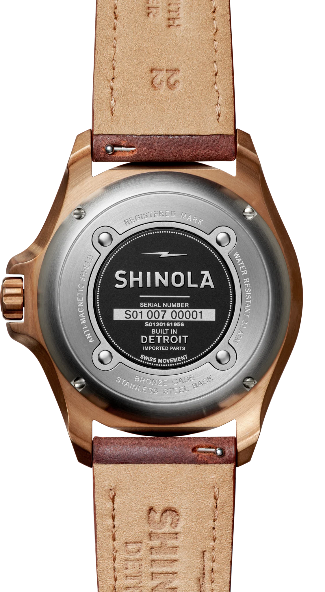 Meet the Kingpin of your watch collection. The Bronze Monster Gift Set will transport you back to the 1920s with an automatic timepiece that features a bronze case and dark colorways. Inspired by the Prohibition era and the stealth of rumrunners on Michigan waterways, this Shinola Monster commands attention in the most unassuming way.
