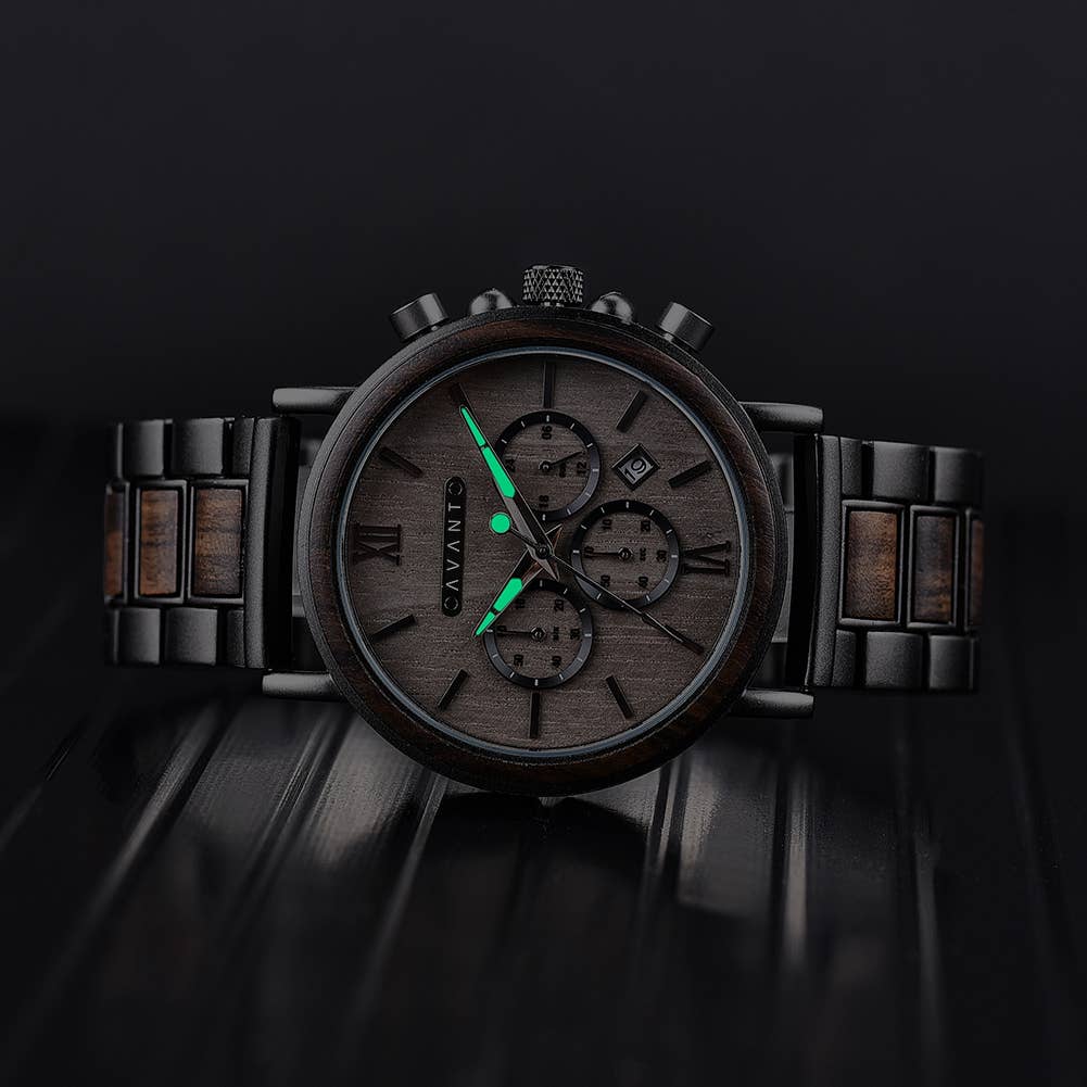 This premium wood watch is carefully crafted from highest quality Steel and Exotic Black Sandalwood. The watch is paired with a matching butterfly clasp made from the same fine material.