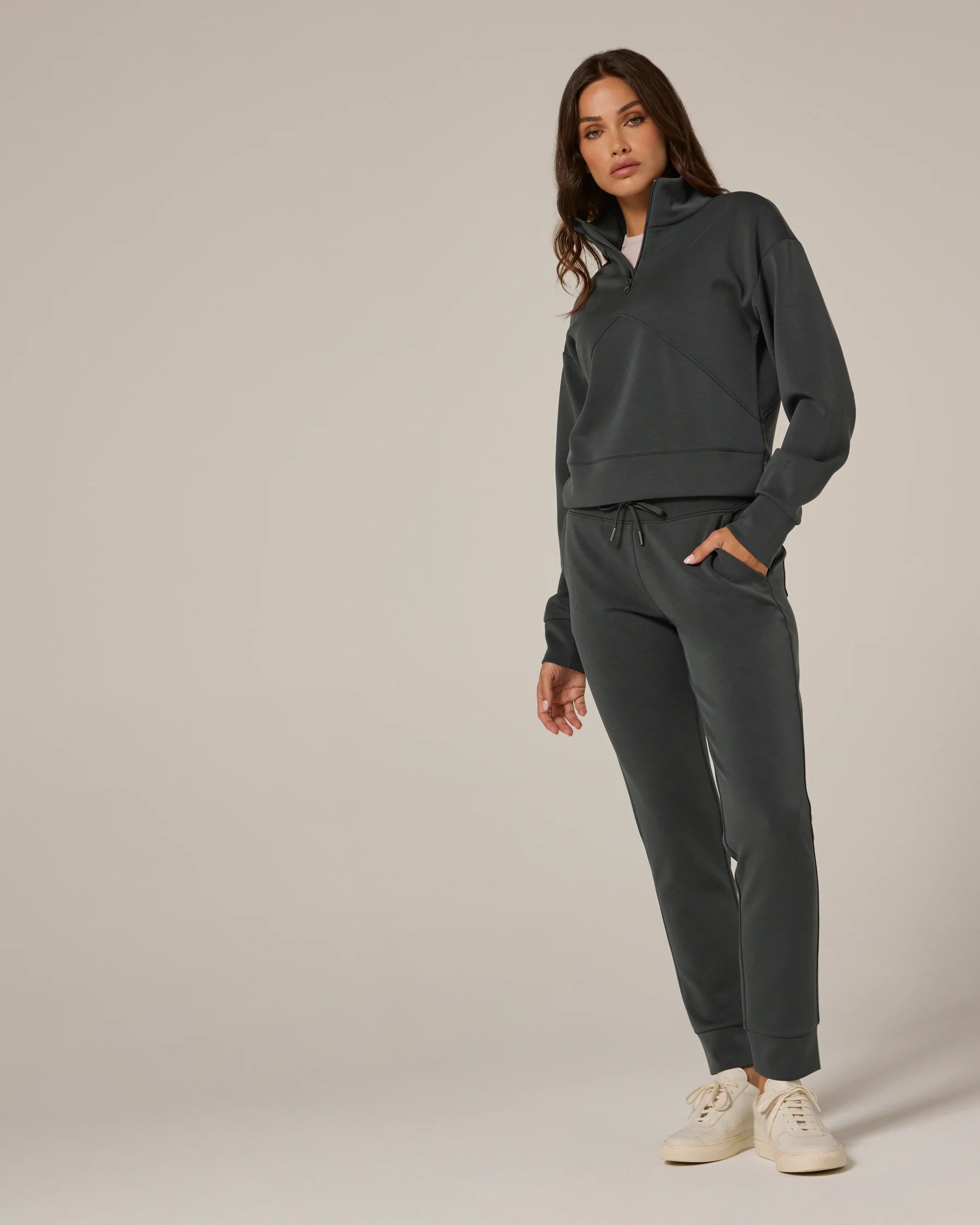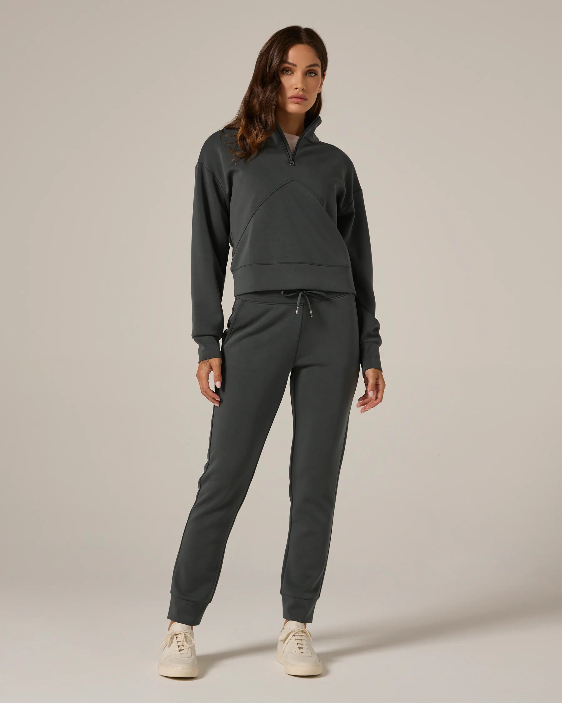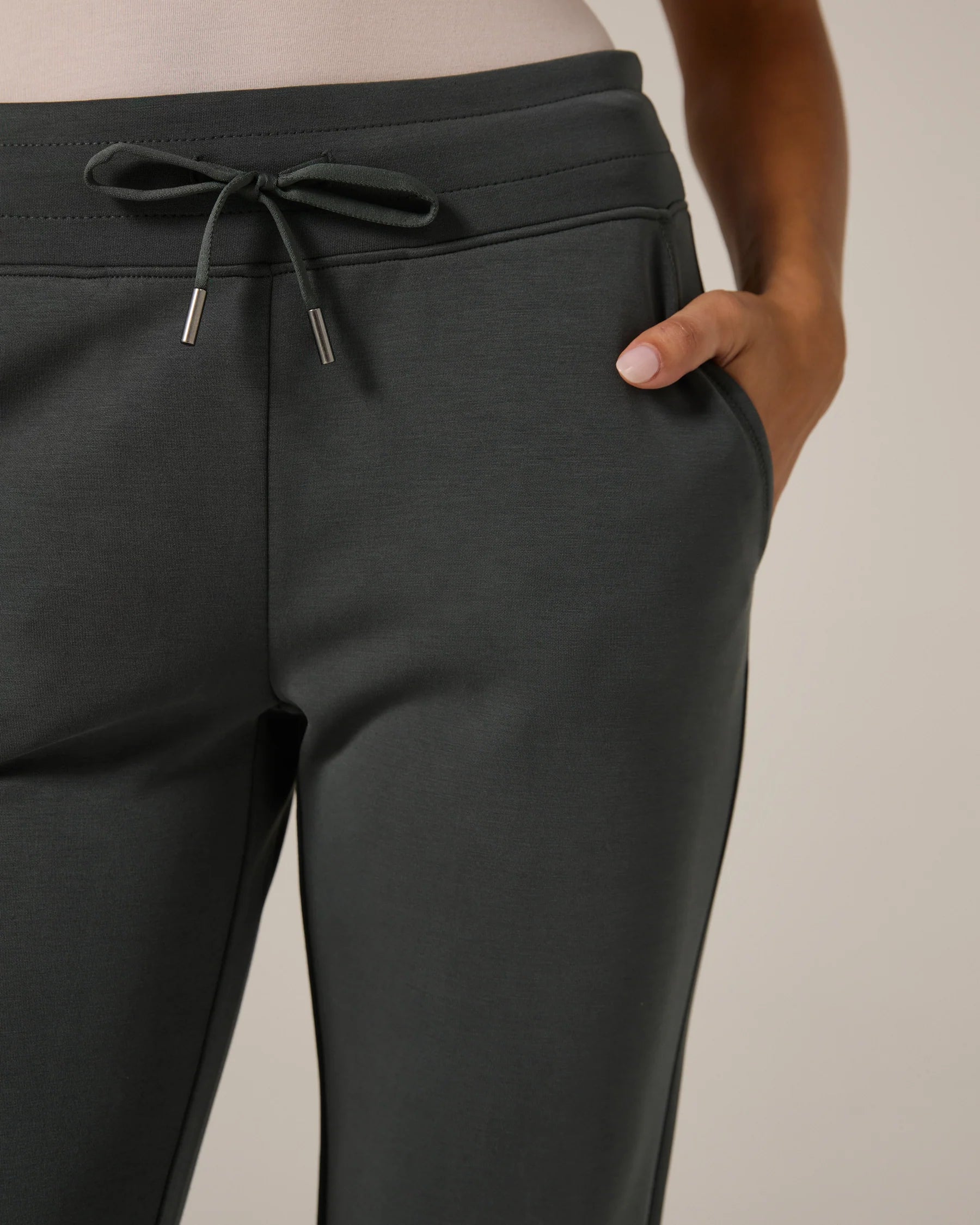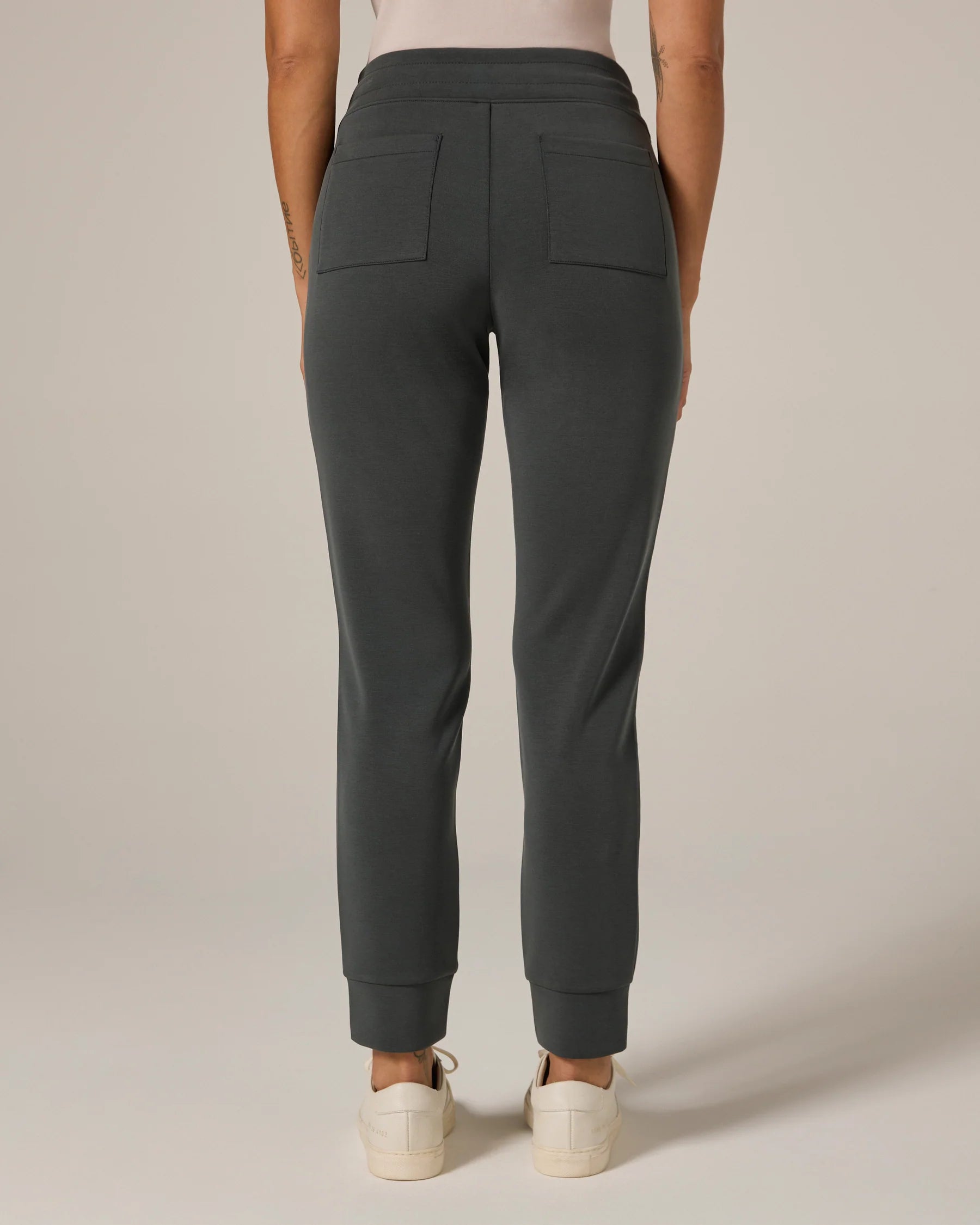 A super soft mid-rise jogger, that's easy to wear for those on-the-go days. Features back patch pockets, drawstrings, and sleep metal tips. Wear with your favorite hoodie and sneakers.