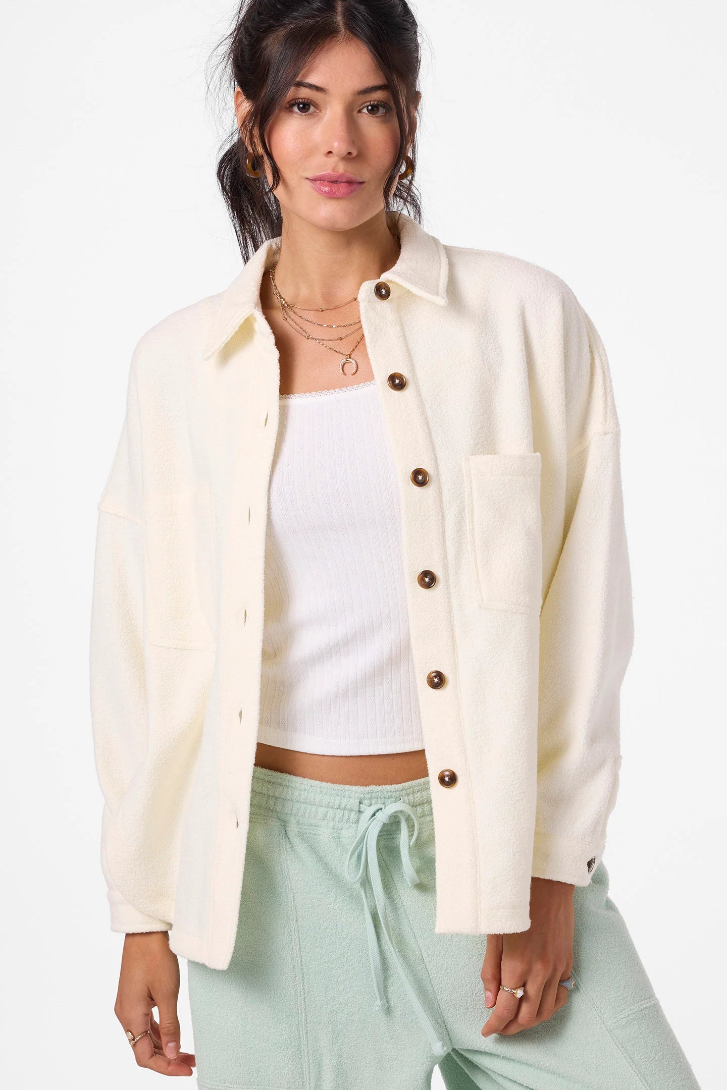 Wavelength Fleece Shacket : Winter White