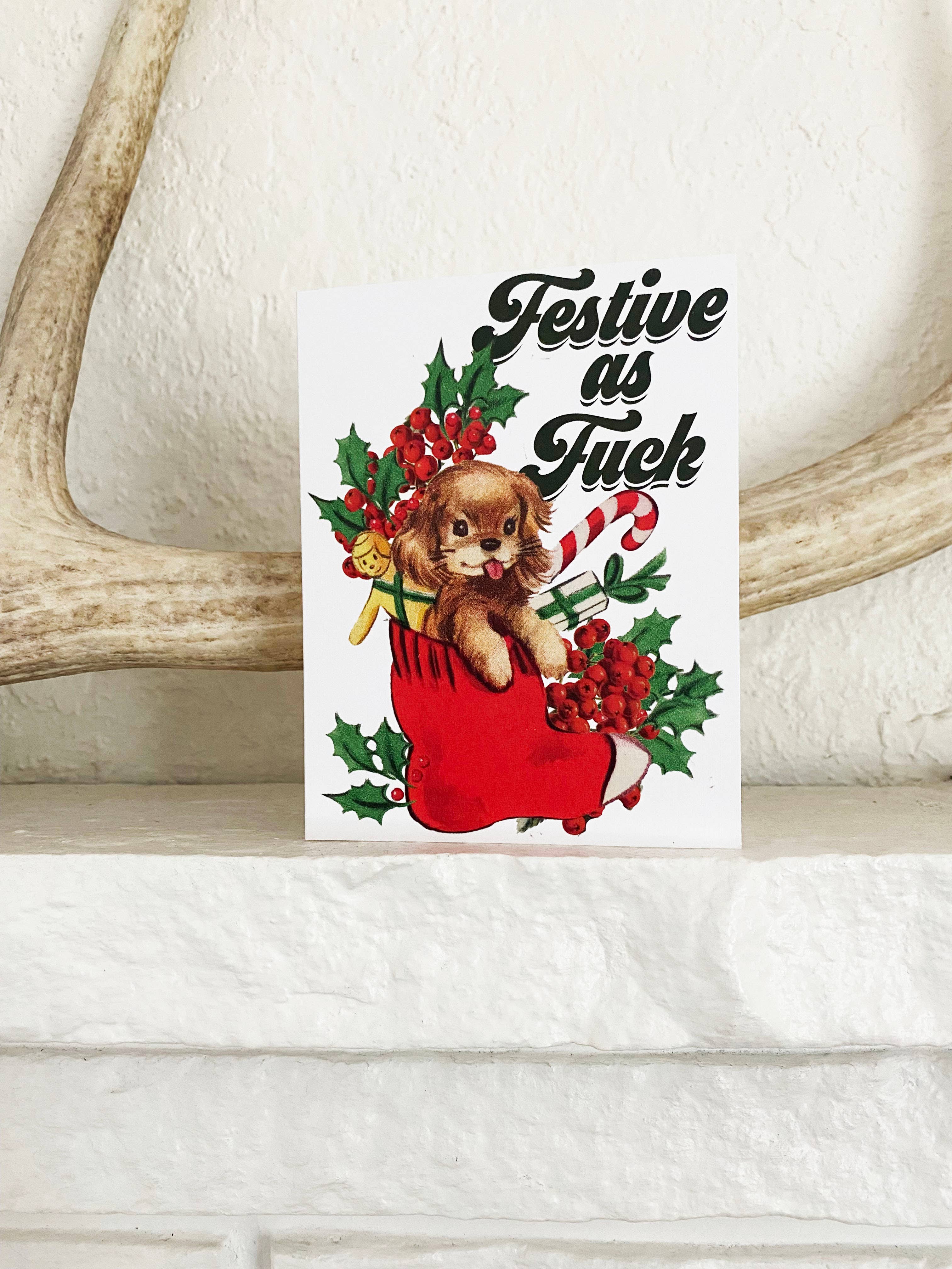 If you're out there hanging up lights in September, you own more than 2 holiday themed sweaters, you have multiple playlists of Christmas music queued up, and you're planning your holiday menus months in advance and the scent of pumpkin spice has become your aura, you might be a little bit festive. The perfect card for all the obsessive decorators!