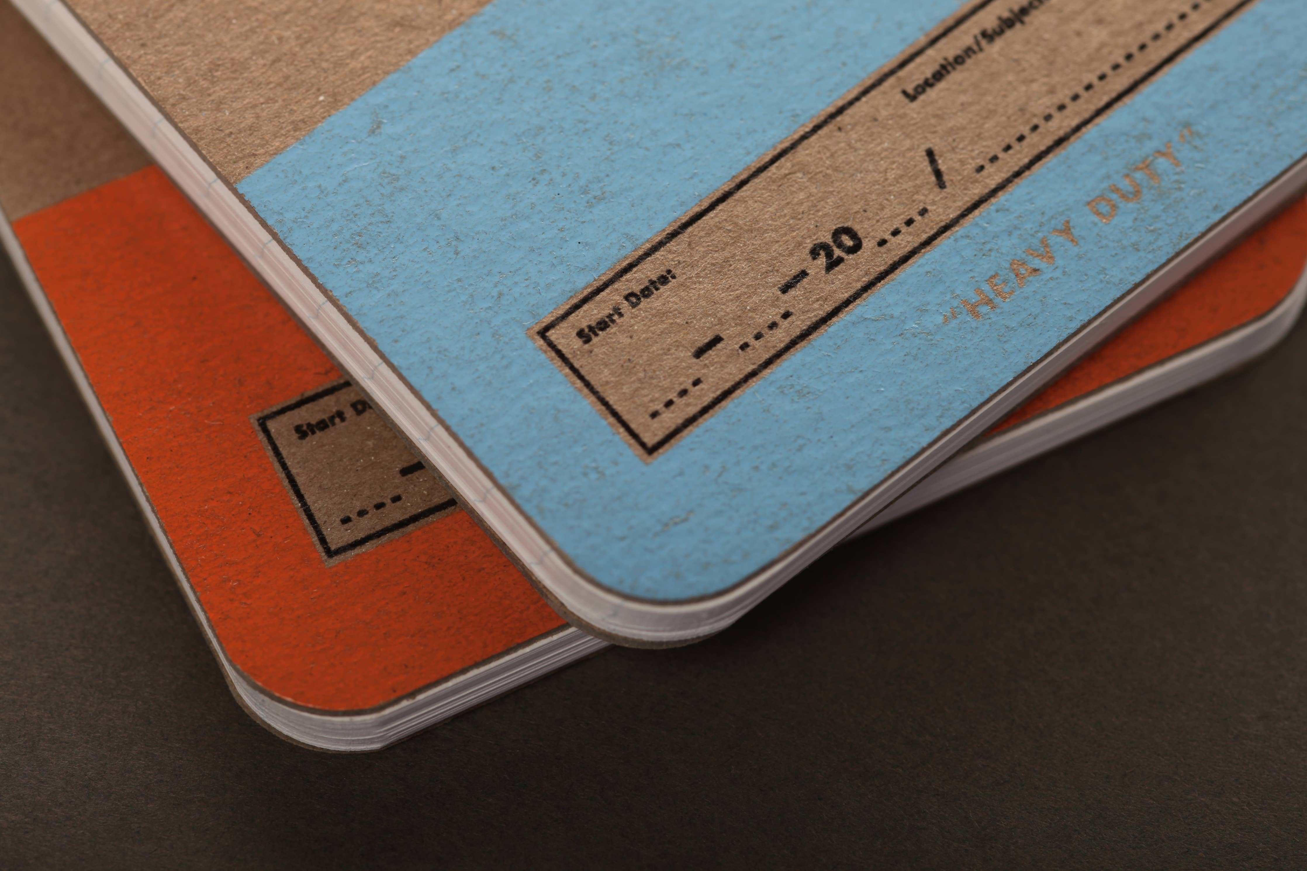 Introducing Field Notes' Seasonal Release for the Summer of 2020, the “Heavy Duty” Edition. Each pack contains a pair of memo-sized Work Books, durable enough for your toughest assignments. The covers are made of extra-beefy “Super Duty Chipboard” and have been screen-printed with thick, opaque ink, one in DDC Orange and one in Blue Sky Blue. The “flip” books are bound from the top with sturdy Double-O Wiring, to make it easy to take notes with one hand while holding the book with the other. Each book contains 80 pages, Ruled on the front with a Double Graph Grid on the back, so you’ll have space for making lists and for sketching out plans too.